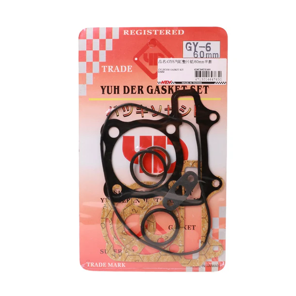 Complete cylinder head and base gasket kit for GY6 engines.